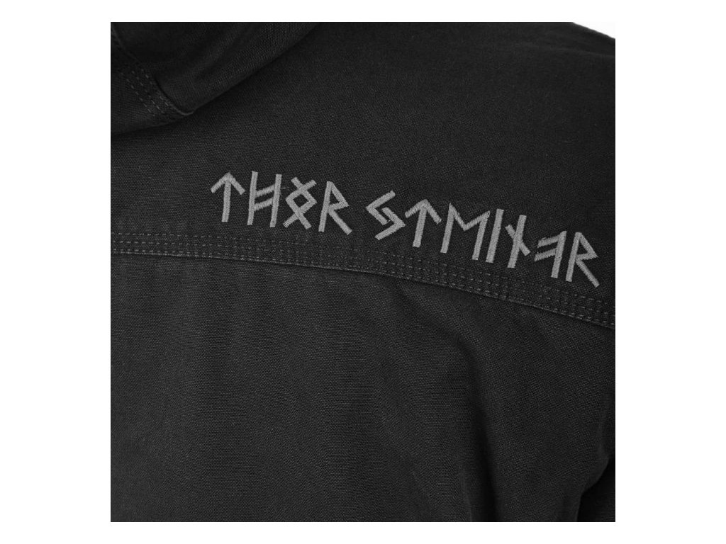 Na rukávu najdete vyšitý runový nápis Steinar, menší logo zdobí i hruď a vyšitý runový nápis Thor Steinar je i na prvé lopatce – díky tomu bunda působí moderně a stylově.