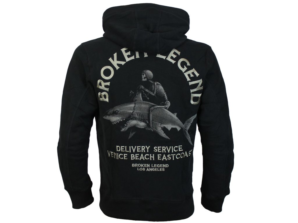 Speciální mikina 211 od Broken Legend. Jedná se o limitovanou edici mikiny na zip z první oficiální kolekce Broken Legend jaro/léto 2026. Bunda má kapuci, zapínání na zip a přední kapsy. Na zádech je velký potisk žraloka, zatímco menší potisk se nachází na levé straně hrudi. Vyšívaný nápis dodává bundičce zvláštní nádech. Opravdu skvělá přechodná bunda vyrobená z pohodlné a měkké bavlněné směsi. Broken Legend ve spolupráci s Yakuza Premium.
