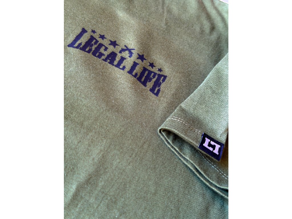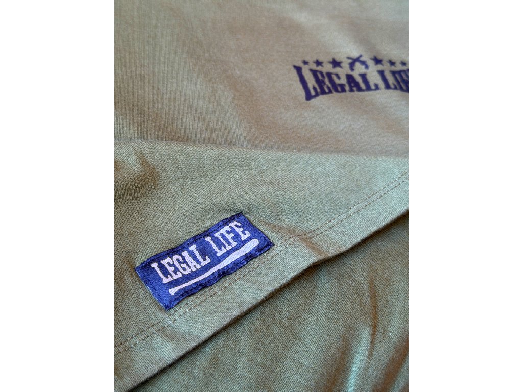 Design je decentní, potisk je vyroben moderní technologií sítotisku. Rukáv zdobí štítek znázorňující logo Legal Life dvěma k sobě otočnými písmeny LL, dole u pasu je další větší štítek s logem a baseballovou pálkou, tyto vychytávky zvedají triko na jiný level, každý štítek je vyrobený a ručně našitý u nás v ČR stejně jako potisky. Triko je velice kvalitní, při výběru textilu pro naší značku Legal Life jsme si dali velice záležet.