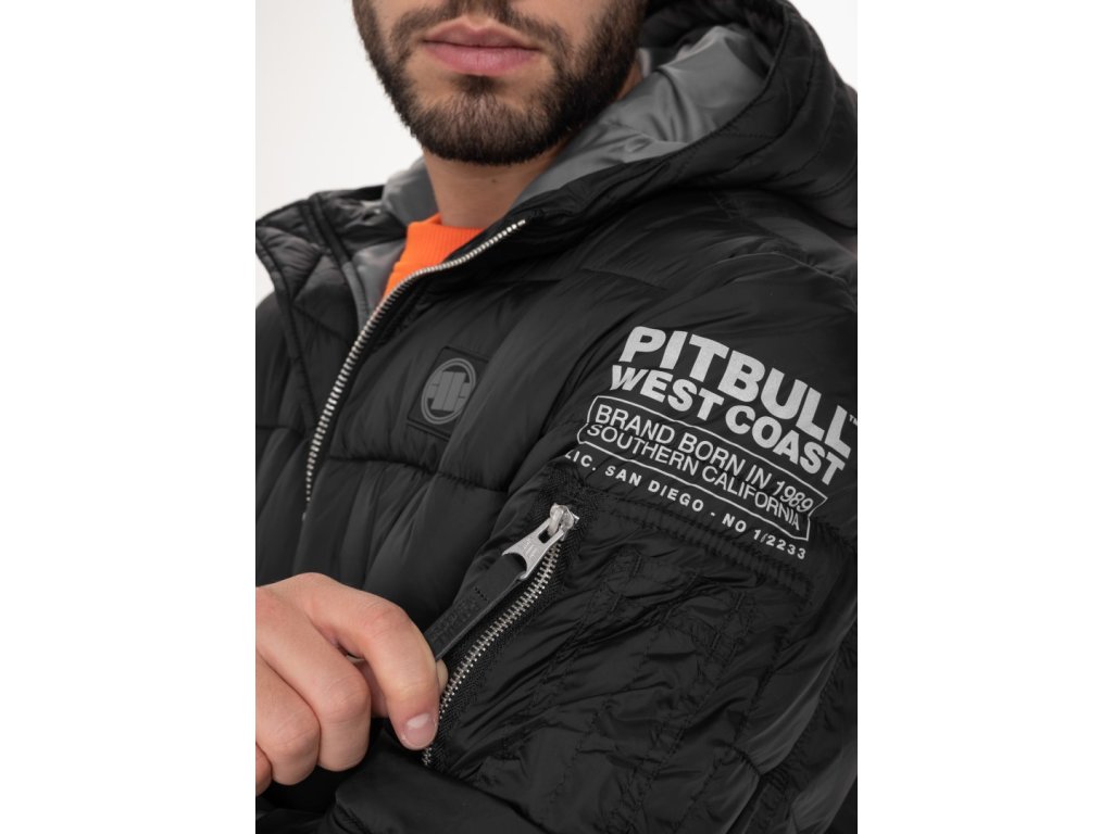 Pánská zimní bunda z kolekce PitBull West Coast - TOPSIDE - prošívaná a vyrobená z vysoce kvalitní nylonové tkaniny odolné vůči větru, dešti a sněhu - podšitá polyesterovou podšívkou, pod kterou je hřejivá vrstva - izolovaná integrovaná kapuce s vnitřním gumovým nastavením šňůrky se zarážkami - vysoký stojatý límec chránící před chladem - dvě boční kapsy uzavřené patentkami - další kapsa na zip na levém rukávu - praktická kapsa uvnitř bundy - všechny zipy jsou kovové a na jezdcích mají kožené přívěsky pro snadné odepnutí - rukávy a spodní část bundy zakončeny do pružného širokého lemu - na levém rukávu potisk - na hrudi silikonový proužek s logem značky PitBull. Složení vnějšího materiálu: 100% nylon / podšívka a výplň: 100% polyester